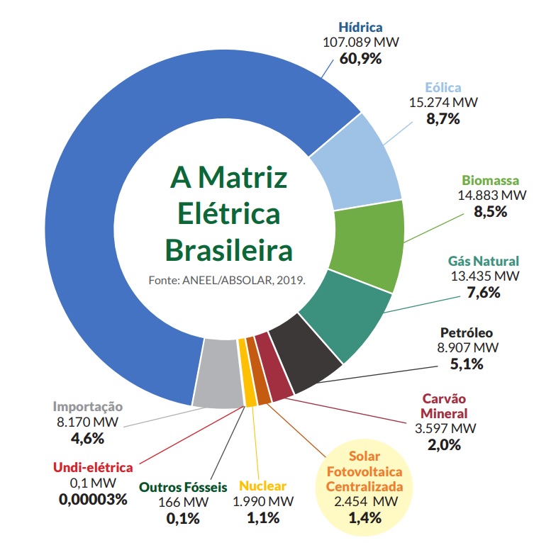 A energia renovável ocupa uma fatia expressiva na matriz energética do Brasil, correspondendo a 44,8% do total. Quando analisamos apenas a produção de energia elétrica, essa participação é ainda mais elevada, alcançando 84,25%, um número bastante superior à média global, que gira em torno de 20%. (portalsolar.com.br)