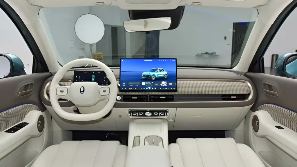 O interior também foi atualizado: painel em tecido, central multimídia com o novo Coffee OS 3.0, integração ao assistente de voz Coffee GPT, teto panorâmico de 1,65 m² e iluminação ambiente configurável em 64 cores.